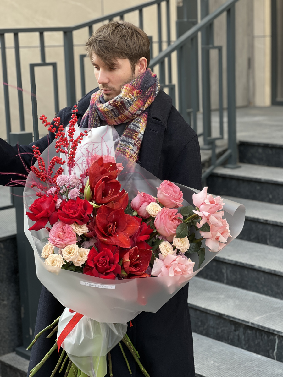 A bouquet with a winter vibe is something special. Just the amaryllis flowers alone are worth it in stylish, sprawling bouquets from XOstudioFLOWERS florists. Bouquets of this shape and color will decorate any interior and add coziness and comfort. Order the most beautiful bouquets with fast delivery on the convenient flower delivery website xoflowers.md.
