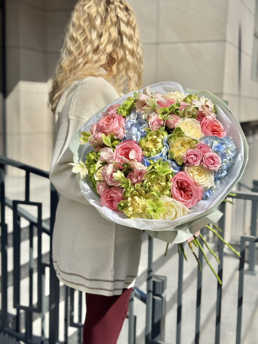 Букет, в который вложено много любви. Флористы студии XOstudio FLOWERS сделали его из самых свежих цветов. Теперь он готов удивить красотой своего получателя!