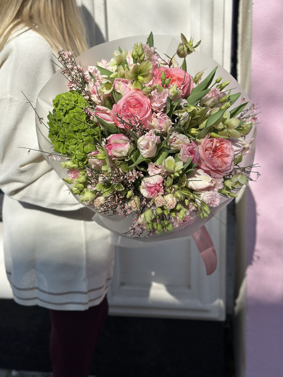 Подарить авторский букет от флористов XOstudio FLOWERS, означает гарантированно порадовать и удивить получателя. Букет из необычных тюльпанов, пионовидных роз и волшебного хелеборуса будет долго радовать получателя.