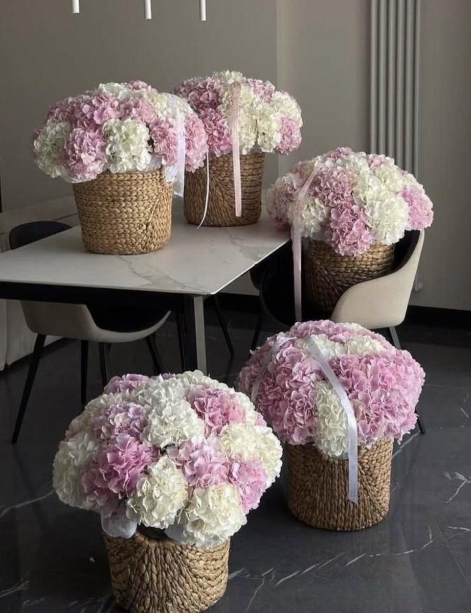 Compoziție florală premium într-un coș de calitate. Hortensia este una dintre preferatele femeilor. Cumpărând o astfel de compoziție, îi veți cuceri inima în aceeași clipă.