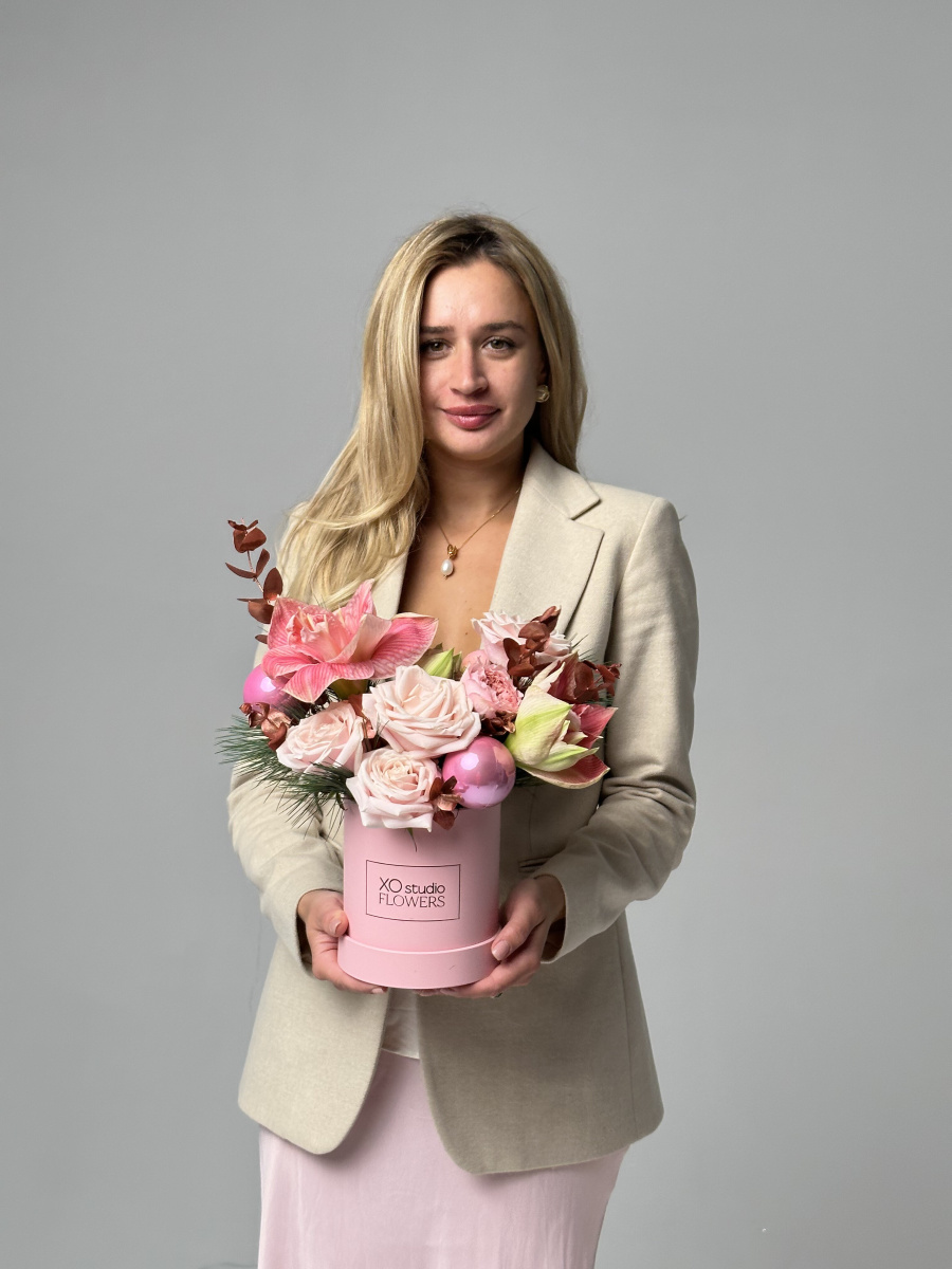 O astfel de compoziție își păstrează perfect forma și rezistă mult timp, deoarece florile nu pierd accesul la apă nici măcar un minut din momentul în care compoziția este asamblată. Aceasta este o adevărată operă de artă a florăriei, care va încânta destinatarul timp de multe zile după ce i-o înmânează.