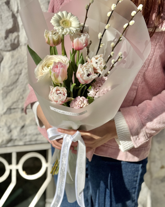 At XOstudio FLOWERS, bouquets are created to be perceived as delightful fragments of spring. Seasonal flowers are combined with soft greenery, decorative branches, and an author’s presentation to make each composition unique.