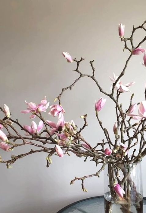 Magnolia can be divided into several fragments, placing accents in different areas. Help your magnolia branch bloom.