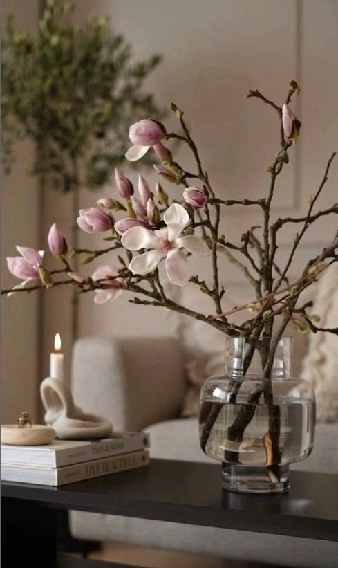 Magnolia is surprisingly versatile in interior spaces. At home, it looks wonderful in a tall glass vase, transporting your thoughts to the Mediterranean coast. In an office or at a hotel reception desk, such branches create a sense of considered, intellectual style. In a private clinic or salon, they add calm and trust.
