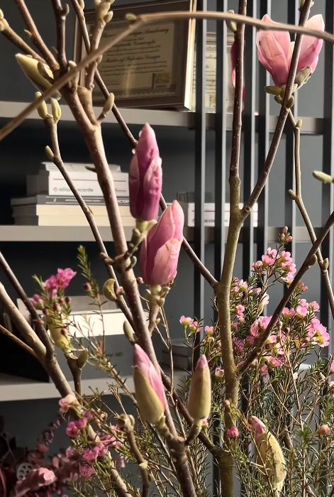 The recipient of such a bouquet almost always freezes in amazement. At first – a slight bewilderment: «Oh, what are these branches?» Then comes admiration. Because magnolia branches are a gift that lives, changes, and develops before your eyes. And in this, there is a special intimacy and depth.