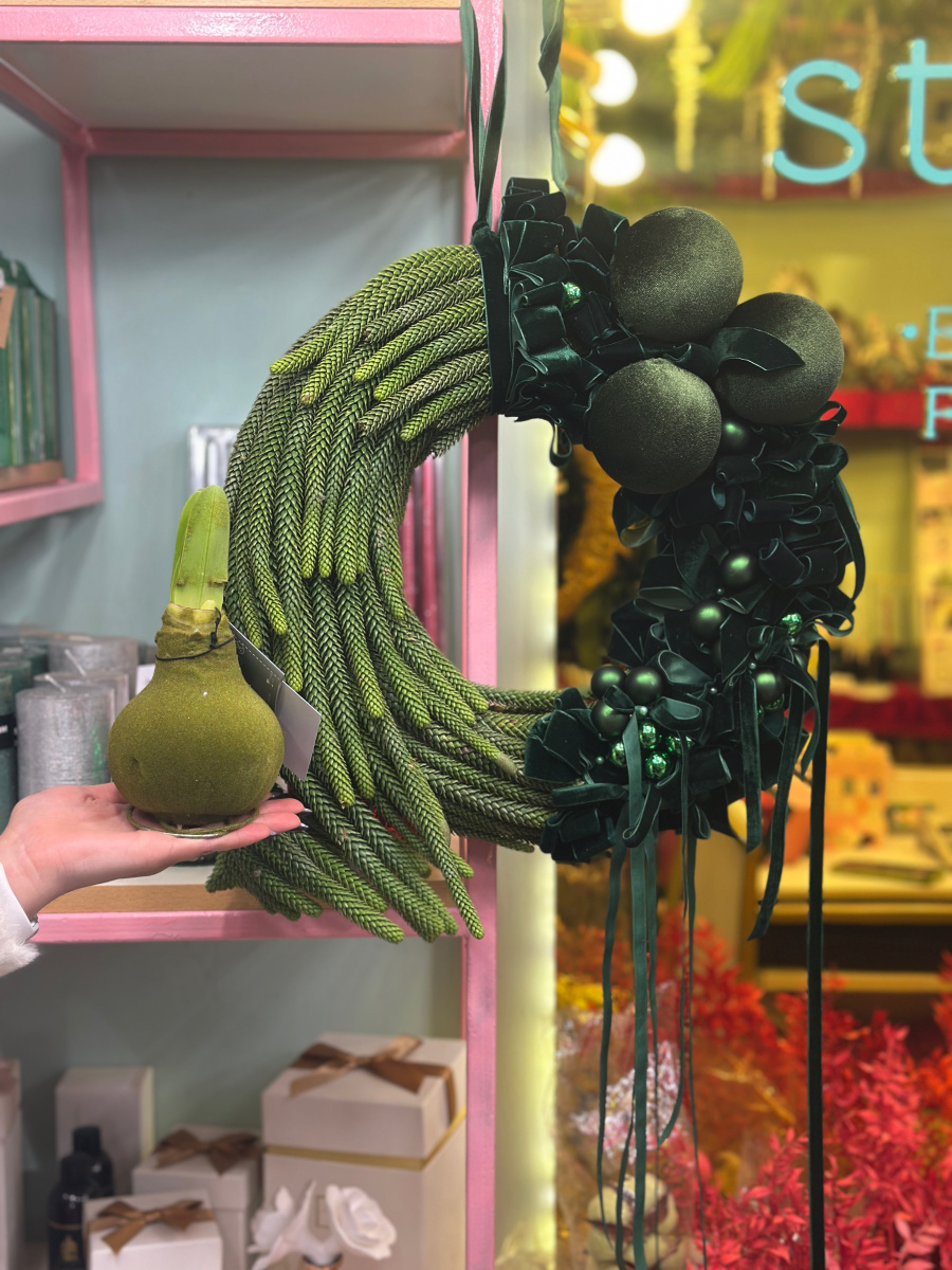 A Christmas wreath is a classic symbol of comfort, light, and the approaching holiday season. At XOstudio FLOWERS, we create New Year's wreaths from fresh pine needles, selecting materials so that the decoration looks natural and stylish in any interior.