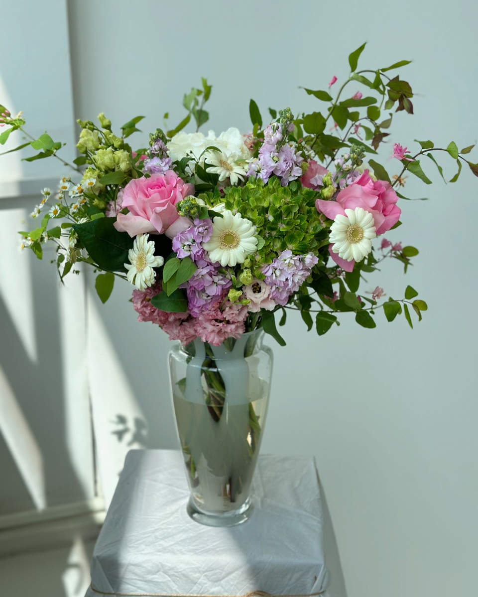 A vase is designed to organize a bouquet in your home, in the lobby of a hotel or restaurant – anywhere. When chosen with taste, it highlights the style of the bouquet and allows each flower to spread out and open up. With the help of the shape, height, and width of the vase, you can control emotions: a narrow vase emphasizes austerity and grace, while a wide vase adds volume and freedom to the composition. Even when empty, it speaks for itself: something important is about to happen here.