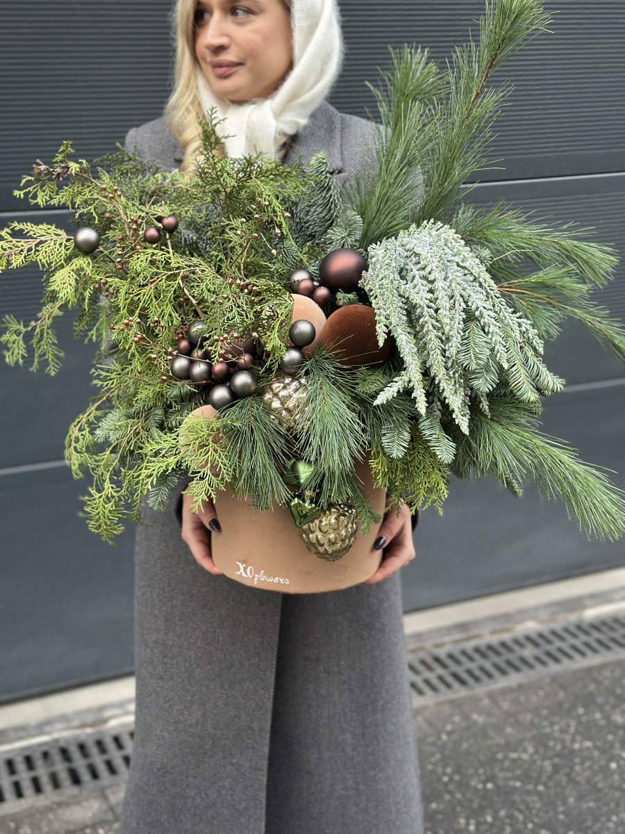 Velvet box with winter composition